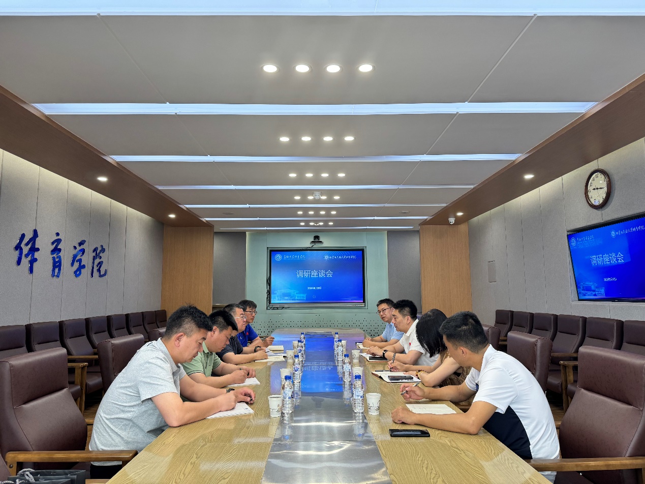 座谈会上,裘鹏经理代表学院对兄弟院校同仁的来访表示热烈欢迎。并介绍了公司的历史沿革、教学科研机构,团队人才队伍等基本情况,以及近年来学院在团队建设、科学研究、人才引进、运动训练、公共体育等方面取得的成绩,与会人员同时观看了学院宣传片。